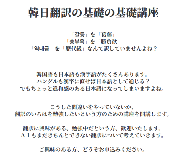 韓国語翻訳の基礎の基礎講座を開講しました